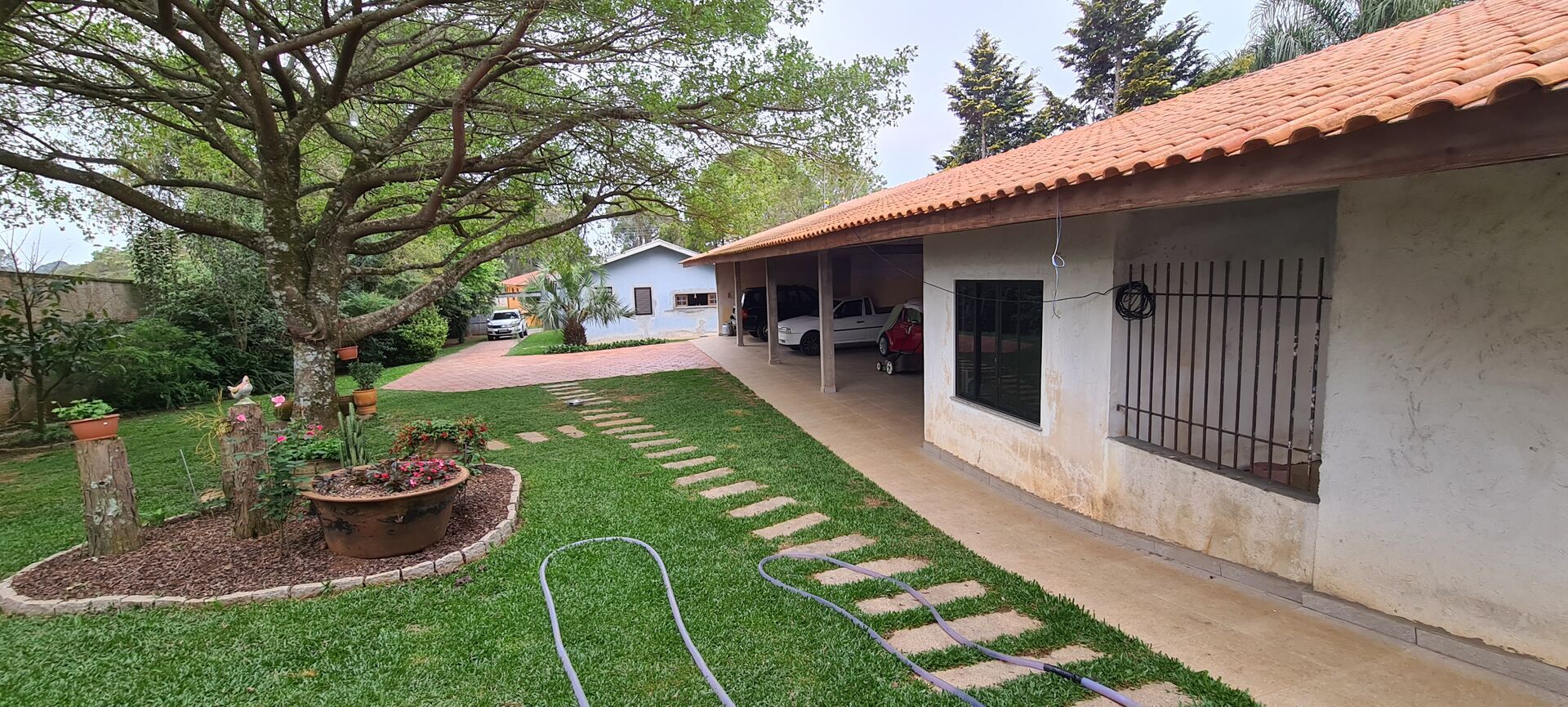 •Garagem para 05 Veículos, com área total construída de 125,00m2, com deposito para ferramentas e guardar produtos de uso em geral.